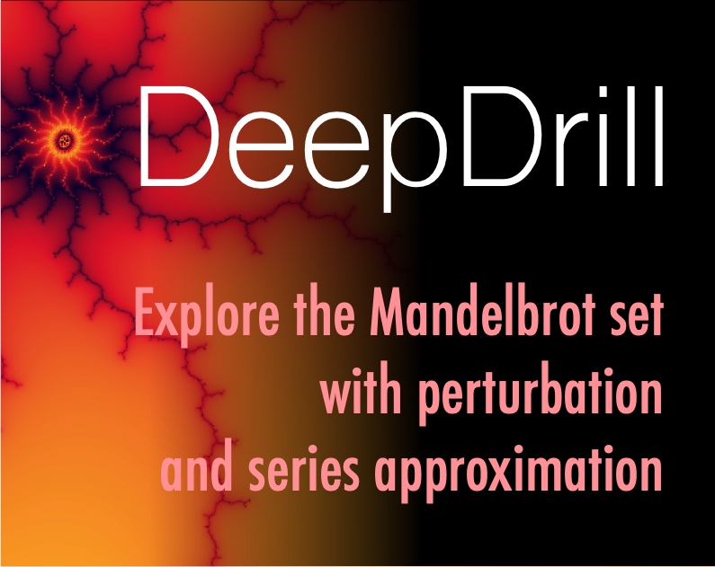 DeepDrill ist ein von mir erstellter Mandelbrot-Generator, der mit Methoden aus dem Gebiet der Perturbationstheorie arbeitet. Mit diesen vergleichsweise neuen Algorithmen ist es möglich, die Mandelbrot-Menge in Vergrößerungsstufen zu berechnen, die mit den herkömmlichen Methoden aufgrund der stark steigenden Rechenzeit unerreichbar sind.